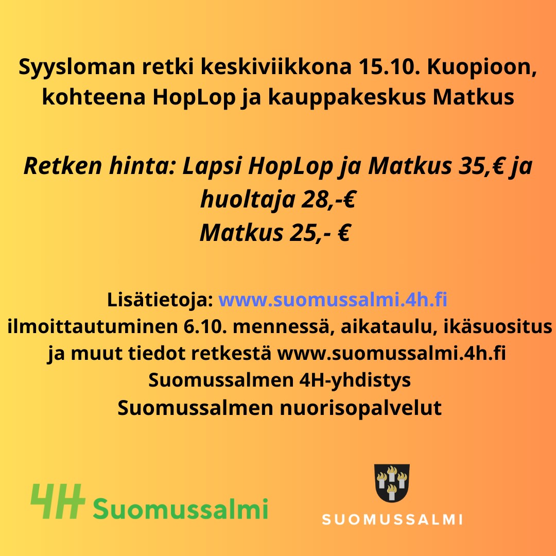 Syyslomalla lasten ja nuorten retki Kuopioon ke 15.10.2025
