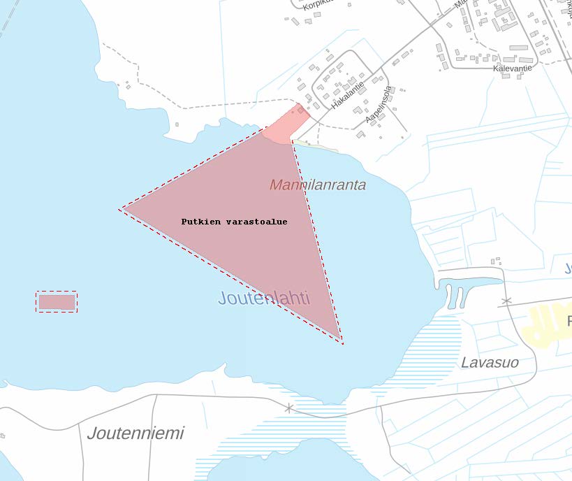 Kirkonkylälle Mannilanrantaan ja Joutenlahden jäälle varastoidaan kahdelle alueelle talven ajaksi vesi- ja viemäriputkia. Alueet rajataan heijastavin lippusiimoin, kun jäälle on turvallista mennä. Heijastavin lippusiimoin rajatuilla varastoalueilla ei saa liikkua.
